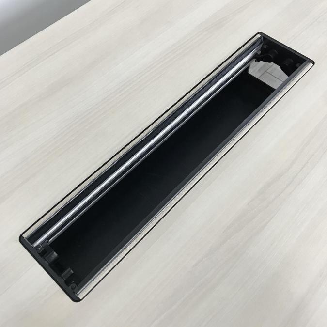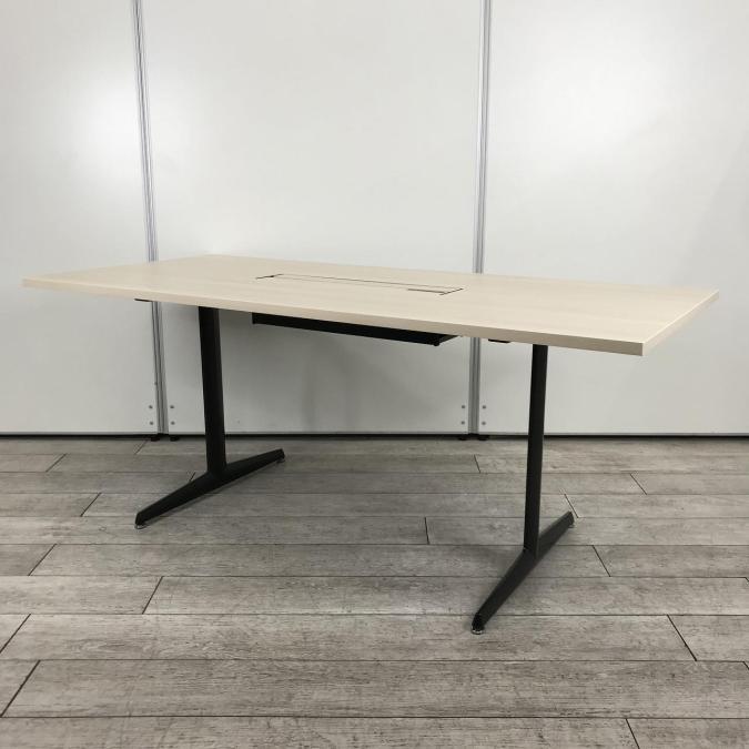【木目ナチュラル天板×ブラック脚がシンプルでオシャレな雰囲気に!幅1800あるので広々ゆったり!】■オカムラ製 角テーブル ミーティングテーブル (W1750/D800/H720) ■木目ナチュラル天板×ブラック脚 ■T字脚 ■配線口1口- 新大阪店