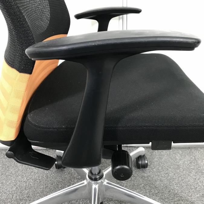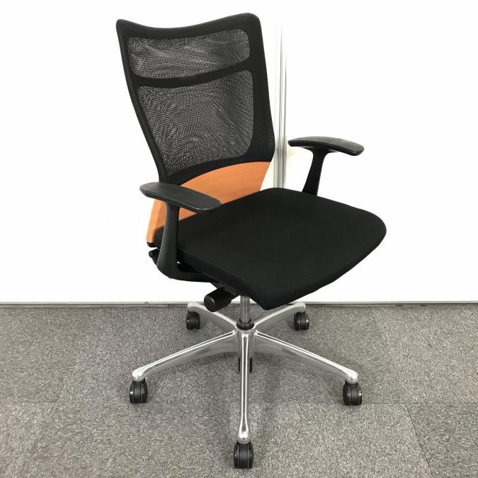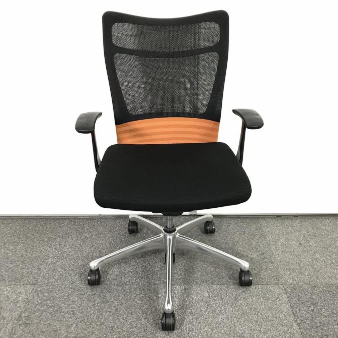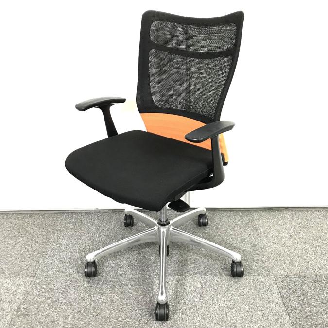 【在庫入替セール品!(本在庫限定価格)】【☆しなやかな曲線が背中にフィット!】■オカムラ フィーゴメッシュチェア 肘付 オレンジ ■背中全体を優しくサポート!★サーキュラーバリューCO2削減量の算出について