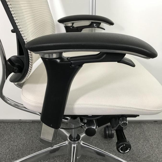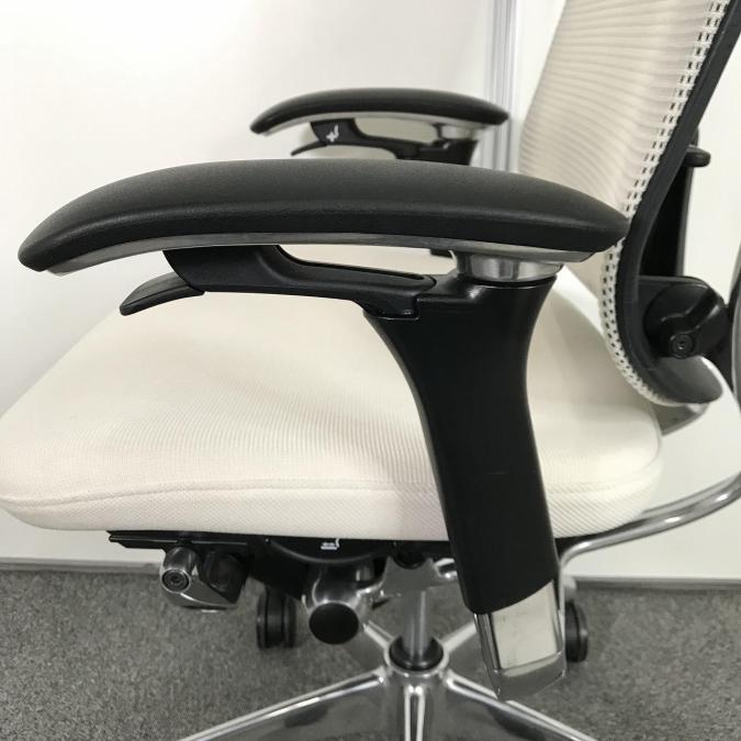 左右のアームレストの先端レバーで座面の高さとリクライニングを調整できるなど、
