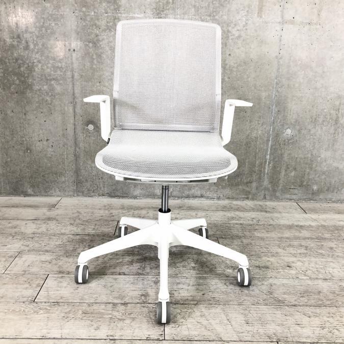 【圧倒的な軽さとデザイン性!誰もが操作しやすいシンプルな機構!】■オカムラ シナーラチェア (CYNARA) ローバック肘付き ■デザインアーム 背/座面メッシュ ■ホワイト- なんば日本橋店