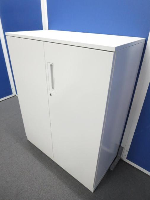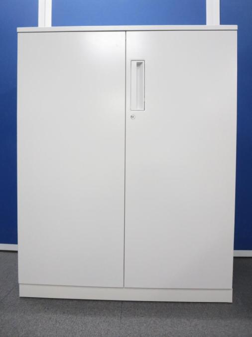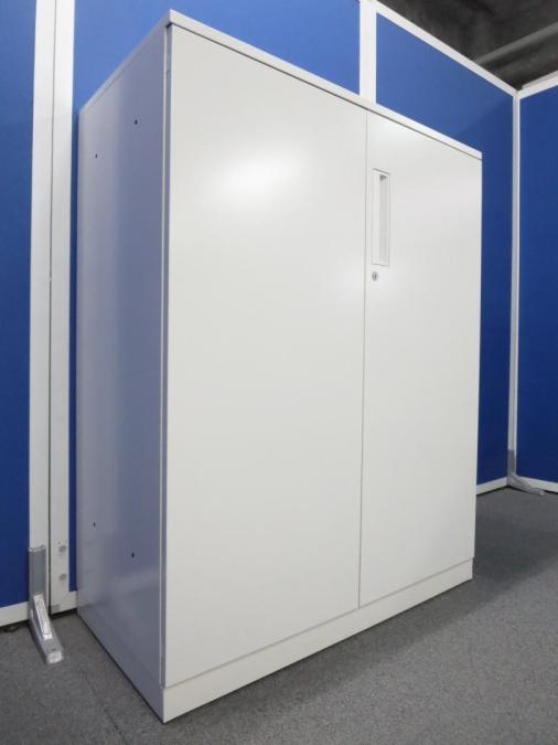 【収納物がひとめで分かる両開き戸タイプ!】■コクヨ(KOKUYO)製 エディア(EDIA)シリーズ 両開き書庫 ローキャビネット H1130㎜ ■天板・ベース付 ■ホワイト ■シリンダー錠