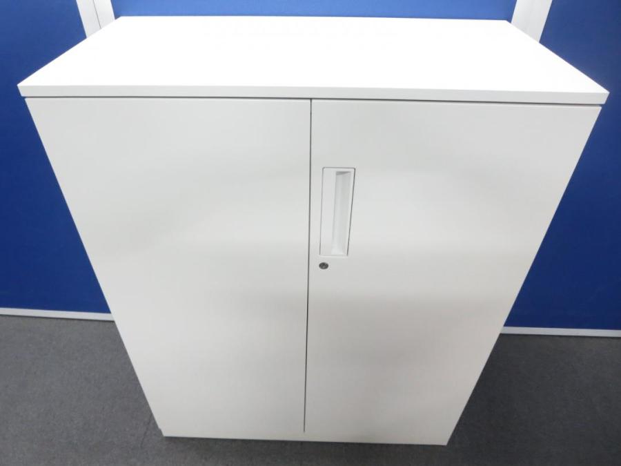 【収納物がひとめで分かる両開き戸タイプ!】■コクヨ(KOKUYO)製 エディア(EDIA)シリーズ 両開き書庫 ローキャビネット H1130㎜ ■天板・ベース付 ■ホワイト ■シリンダー錠【IB】