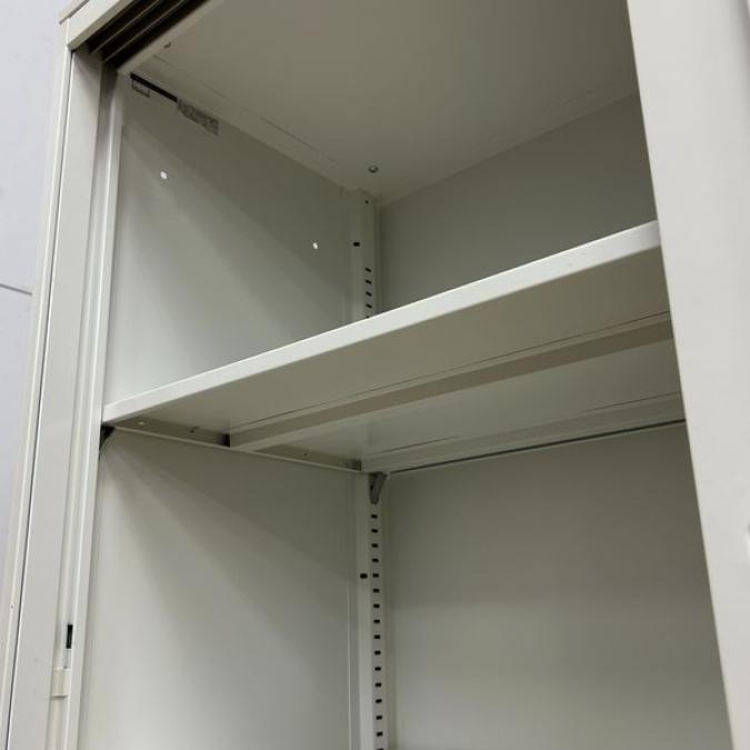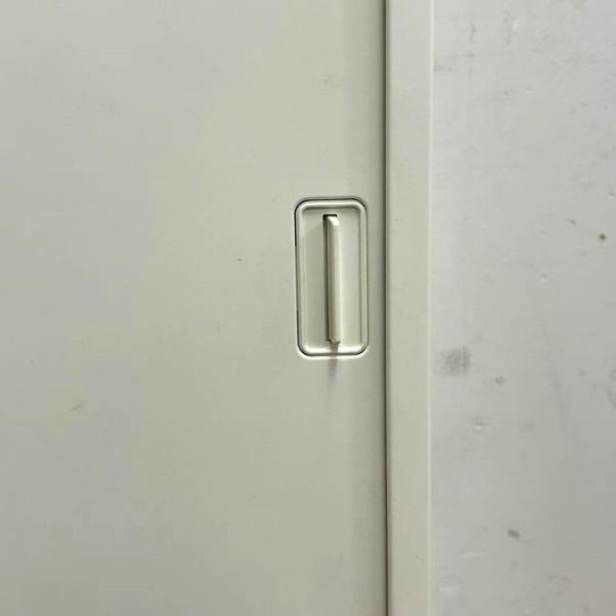 2枚引き戸書庫 オカムラ レクトライン 鍵付き シリンダー錠 ホワイト 天板無し スライド式の扉のため導線を邪魔しません