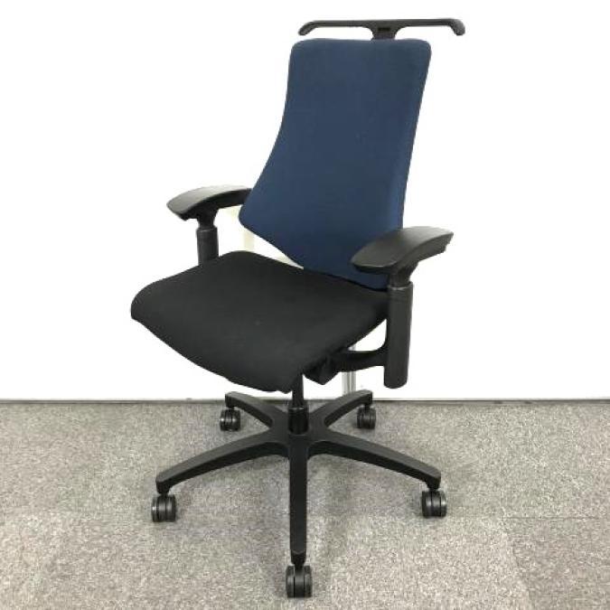 【包み込まれるフィット感!】 ■イトーキ製 エフチェア 肘付 ネイビーブルー ■デスクワークの疲労を軽減!