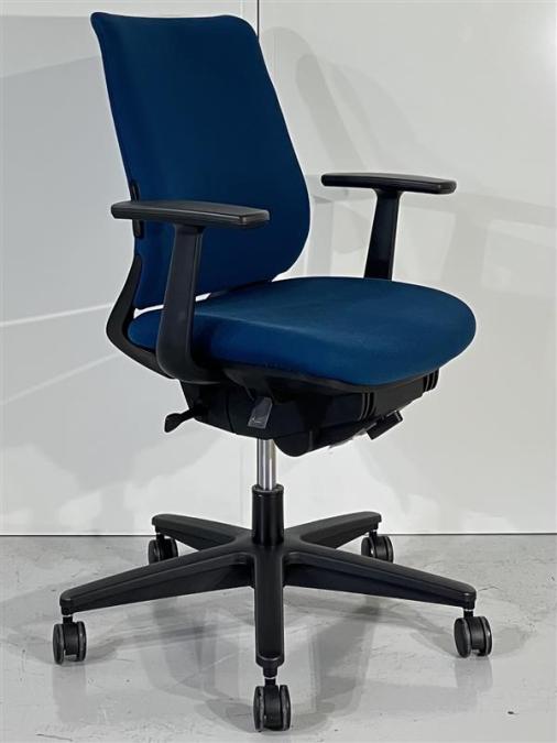 【すっきりと上質なデザイン!快適な座り心地を実現するオフィスチェア!】■コクヨ製 ミトラ2 背ファブリックタイプ 肘付ローバックチェア ■ブルー×ブラックフレーム ■固定肘- なんば日本橋店