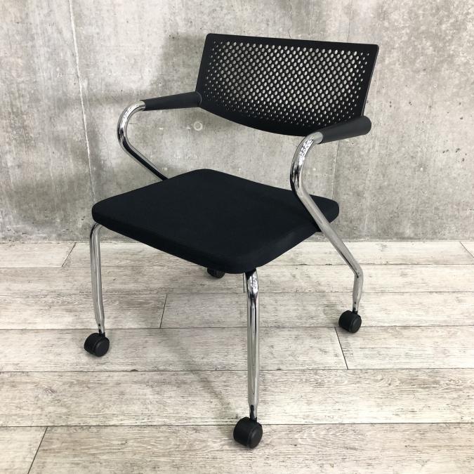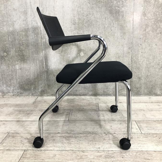 【緩やかな曲線が疲れにくさを実現!人気の高い高品質デザインチェア】■ヴィトラ(Vitra) ビザロール ミーティングチェア ■肘付き キャスター付き ■ブラック- つくば店