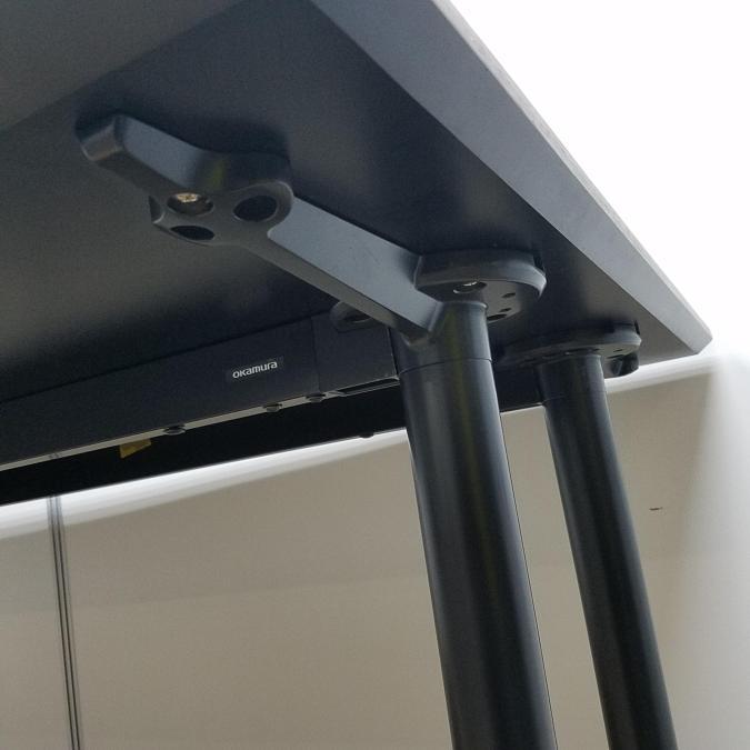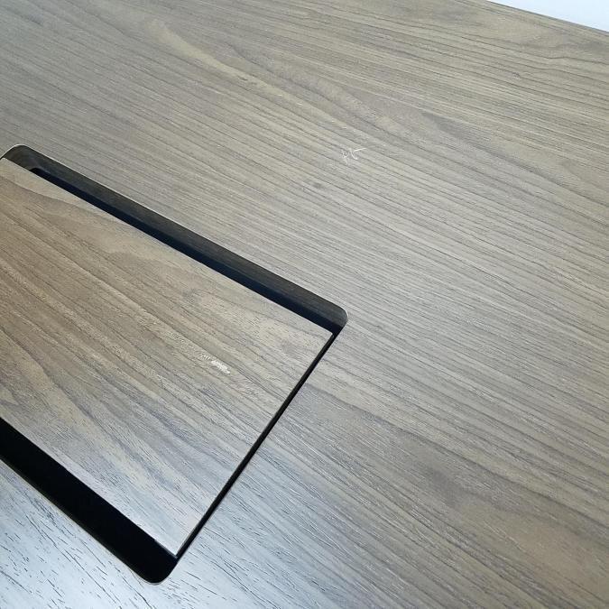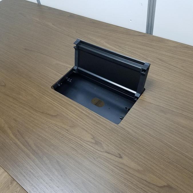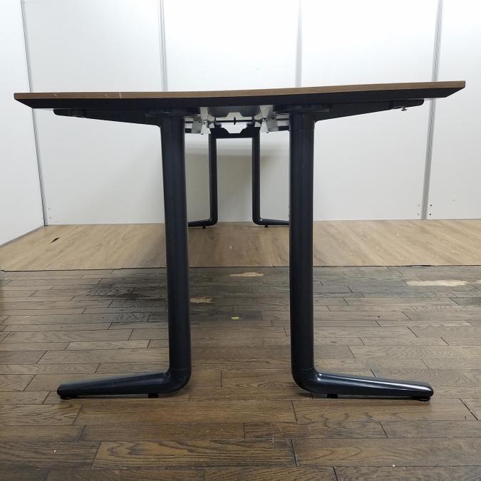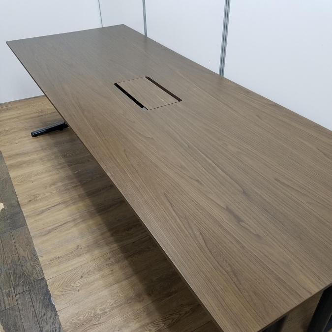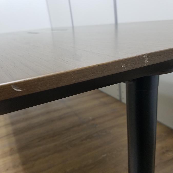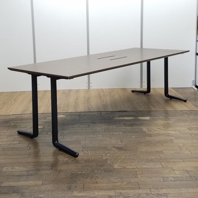 【レア】【天板キズにあり】オカムラ製 ラティオⅢシリーズ 木目ダーク天板 ブラック脚 W2400/D900サイズ 配線口有り W2400サイズのシックなテーブル!打ち合わせや応接などにピッタリ! ミーティングテーブル!!- 京都東寺店