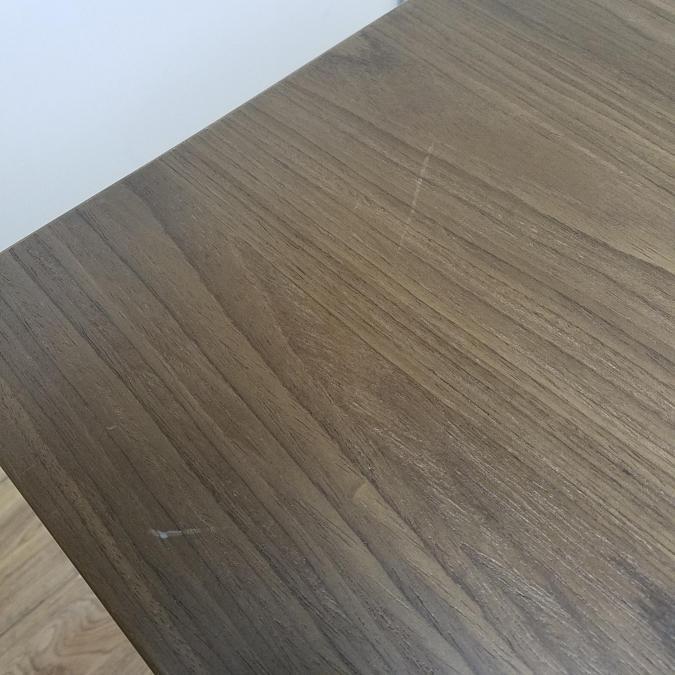 - 目立つ箇所あり傷・凹みが多数、深い傷・凹みが一部ある。(例、天板、幕板、棚板、サイド部分、脚部等にある。)