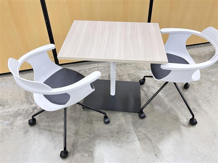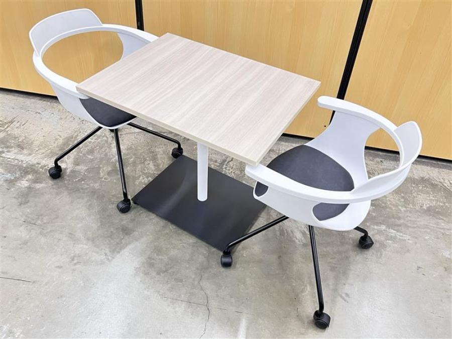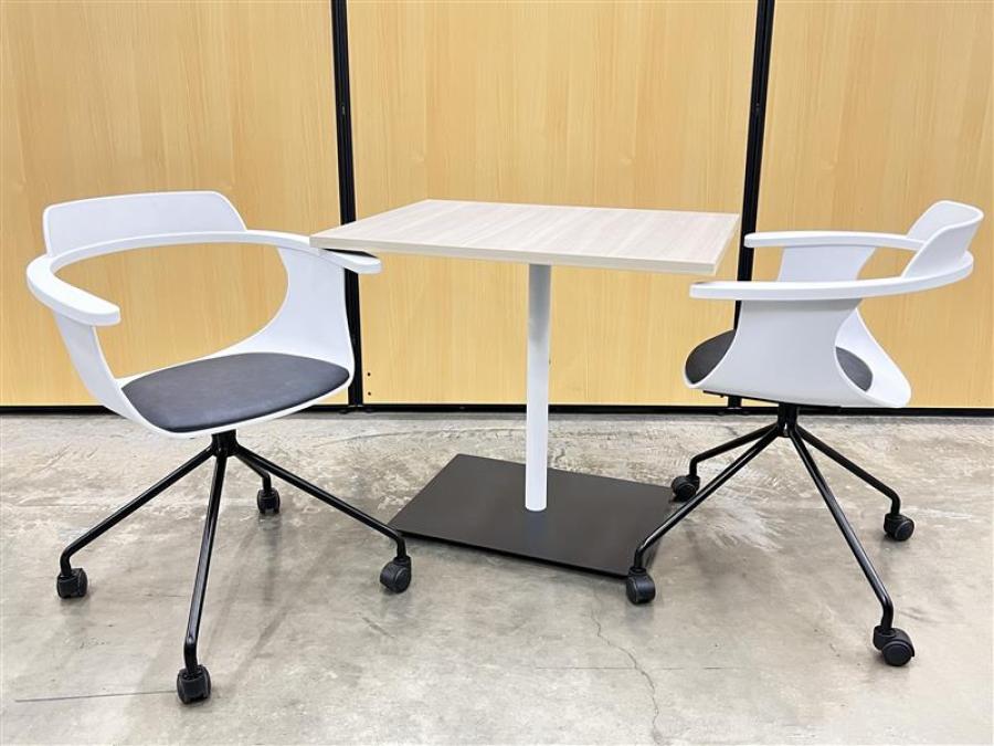 【チェア2脚+テーブル1台のセット!】休憩室、リフレッシュルーム用に! ■コクヨ(KOKUYO)/デイズオフィス(DAYS OFFICE)/flip topテーブル/天板:ホワイトナチュラル 脚:ブラック■東谷/ミーティングチェア- 在庫数