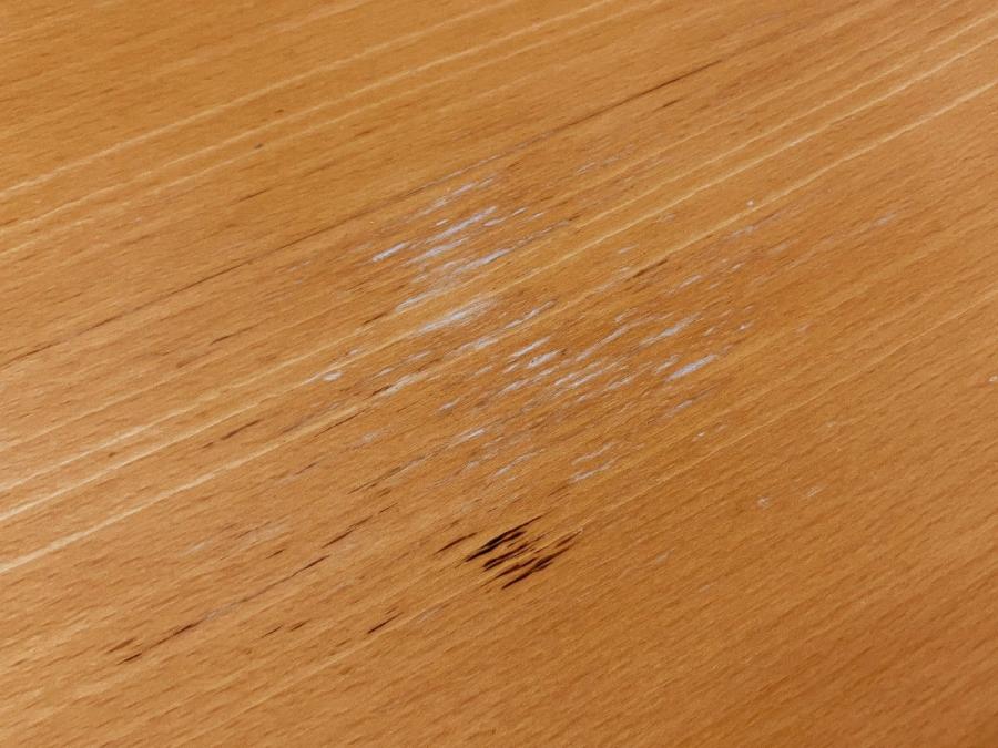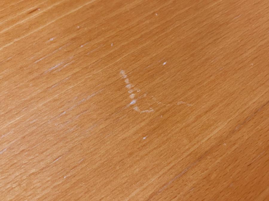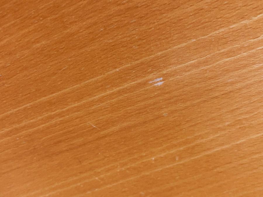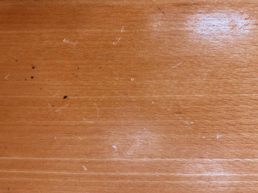- あり黄ばみ・変色が広い範囲にうっすらある、または濃い黄ばみ・変色が一部ある。(例、天板、幕板、棚板、サイド部分、脚部等にある。)