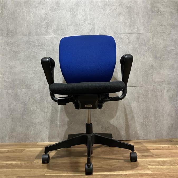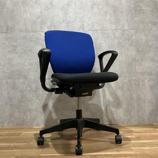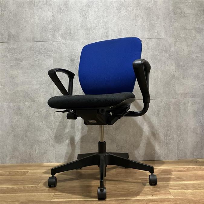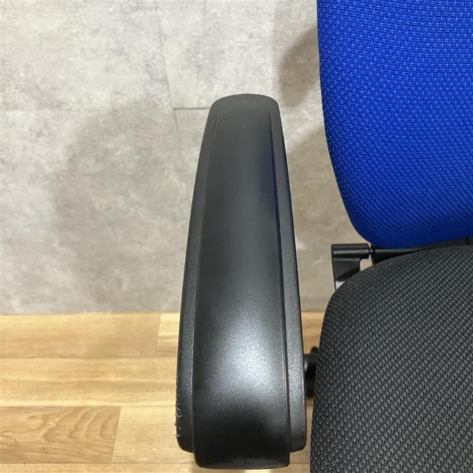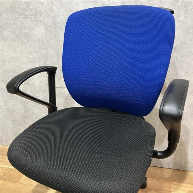 【一人ひとりにマッチする座り心地!姿勢の変化にフレキシブルに対応!】■イトーキ(ITOKI)製 プラオチェア 肘付 ローバック ■サークル肘 ■背面ストロングブルー×座面ブラック オフィスバスターズ 東大阪店【K11】