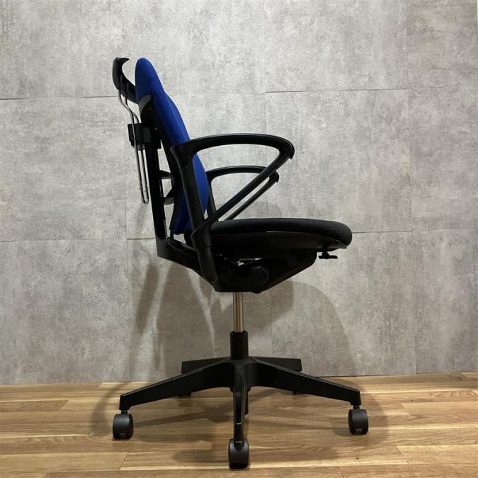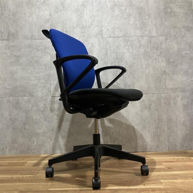 【一人ひとりにマッチする座り心地!姿勢の変化にフレキシブルに対応!】■イトーキ製 プラオ 肘付ローバックチェア ■サークル肘 ■背面ストロングブルーブルー&座面ブラック