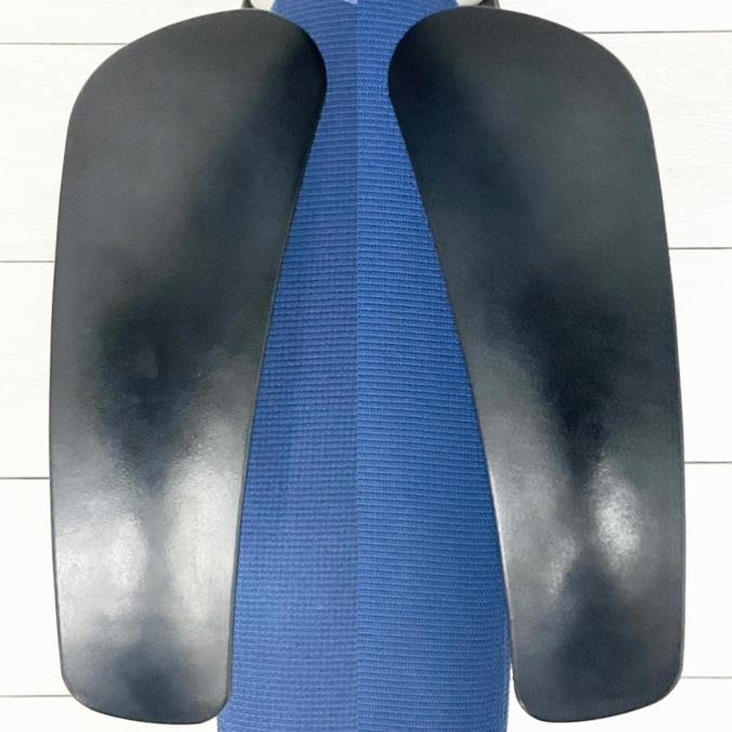 - アームパッドは90°(内60°:2段階、外30°)の角度調節が可能。コンピュータ操作時などに肘全体をやさしくサポートします。