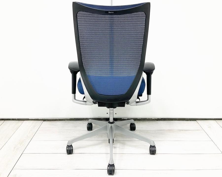 【オフィスの執務室、会議室におすすめ!】■オカムラ(okamura)製 バロン(Baron)チェア 肘付き ハイバック 背面メッシュ ■可動肘 ■ダークブルー × ホワイトシェル【硬めの座面が大人気!国産メッシュチェアの代表格!】【状態良好品!】