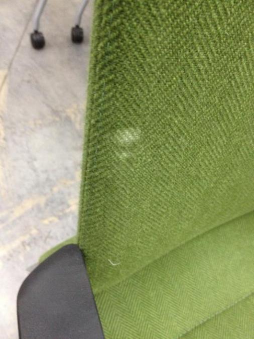 - あり黄ばみ・変色が広い範囲にうっすらある、または濃い黄ばみ・変色が一部ある。(例、座面・背もたれ、脚部等にある。)