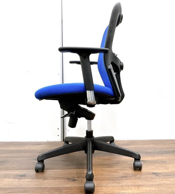 【在庫入替セール品!】涼し気背もたれメッシュチェア!ランバーサポート付で腰痛対策にも! ■プラス/GRAZE(グラーゼ)/ブルー 肘掛上下調整可能!- 立川・八王子店
