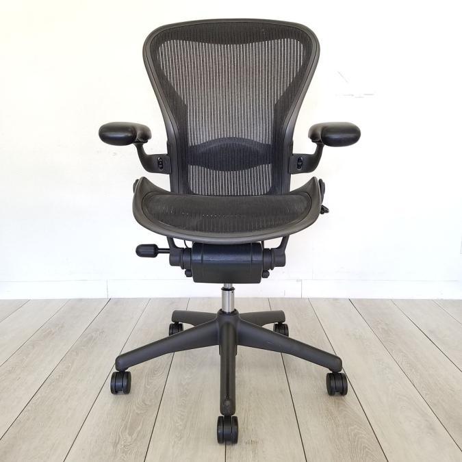 【★肘と脚にスレあり!見た目を気にしなければ使用に問題なし★】ハーマンミラー製 アーロンチェア(スタンダードタイプ) メッシュ 在宅 自宅 ゲーム 海外製 椅子 リラックス 中古家具 中古オフィス 九州最大級《オフィスバスターズ福岡博多店は、福岡を拠点として、日本全国へ中古オフィス用品・オフィス家具を提供しております》