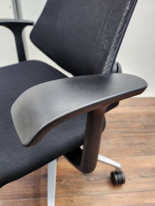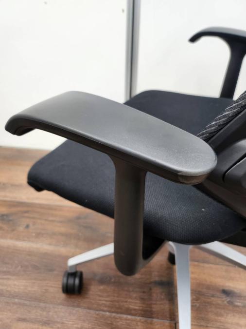 【在庫入替セール品!】【三次元フォルムが身体にしっかりフィット!】■イトーキ エフチェア 可動肘付 ブラック 背裏ストライプメッシュ ※座面に擦れ・ホツレがあるためお安く! 【ITOKI fチェア】