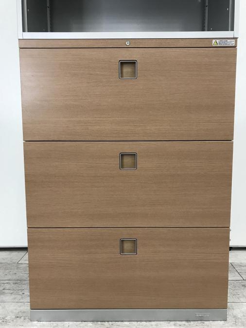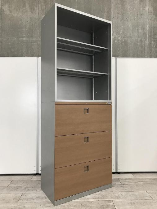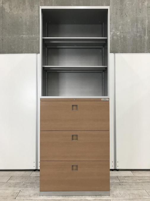 【見える化にフォーカスしたオープン書庫と高品質で使いやすい大容量の三段キャビネットの書庫セットが入荷!】■オカムラ(okamura) レクトライン オープン+3段ラテラル 書庫セット ■W800㎜×D450㎜×H2160㎜ ■本体:シルバー ラテラル正面:木目調 【弊社使用欄:A00961651,A00962582】- 茨城南店