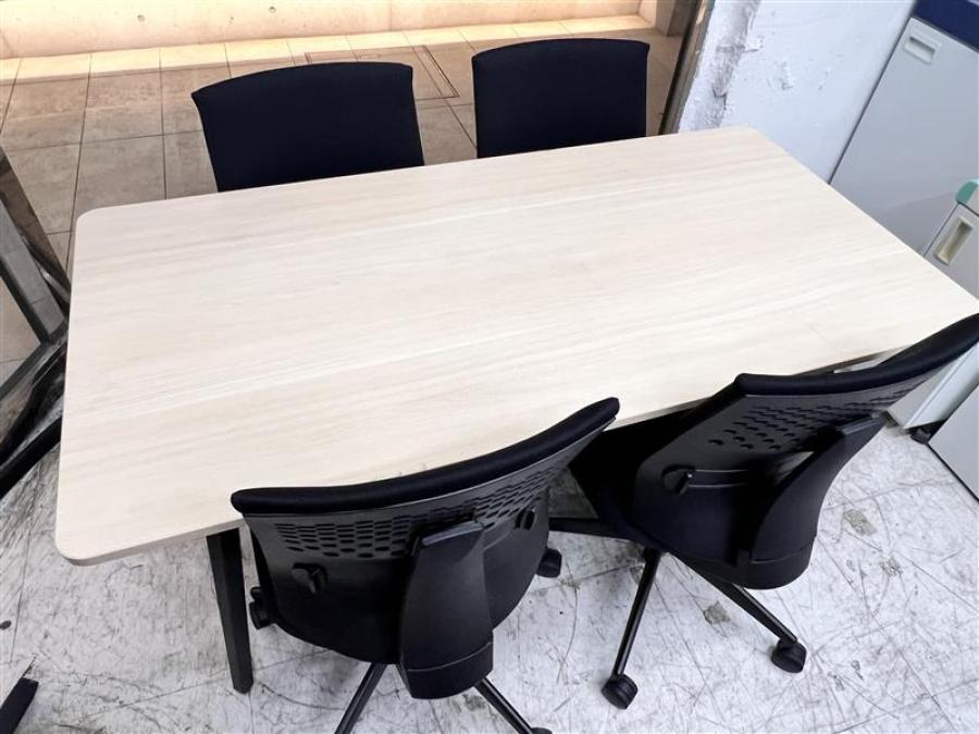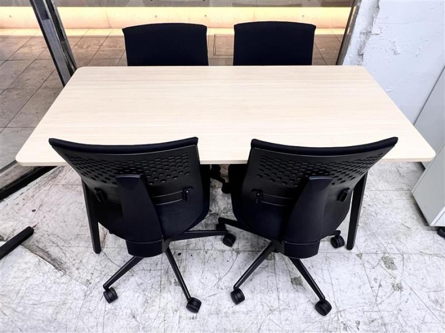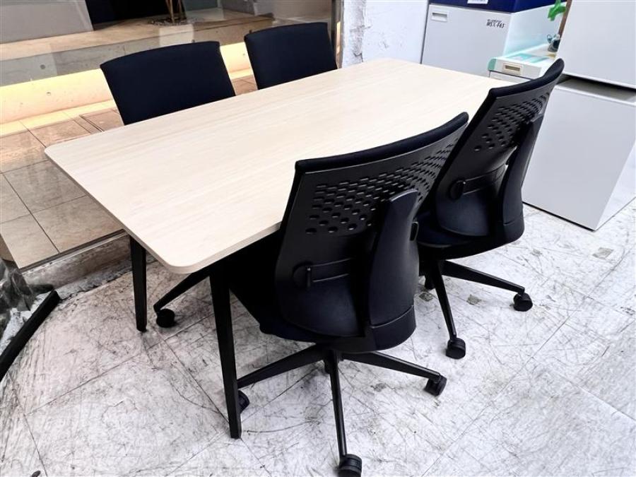 テーブル+チェア4脚のセット!■ウチダ(UCHIDA)製 レムナシリーズ ミーティングテーブル 会議用 W1500×D750㎜ ■ナチュラル天板/ブラック脚 ■4本脚/オススメ(おすすめ) /人気商品- 在庫数