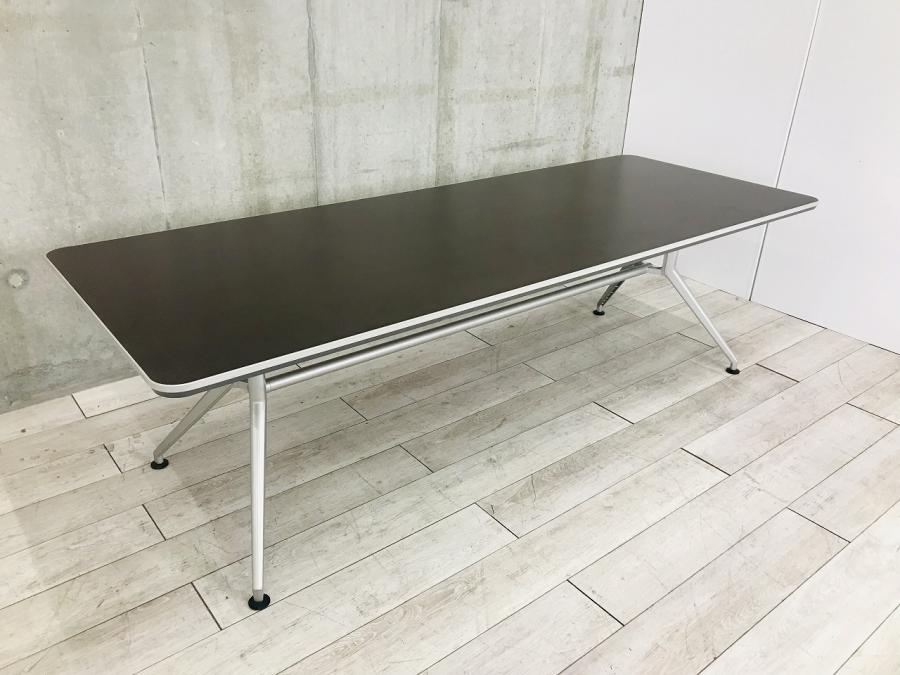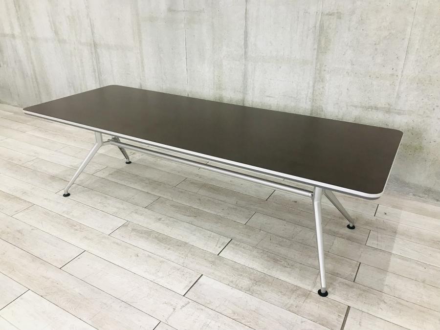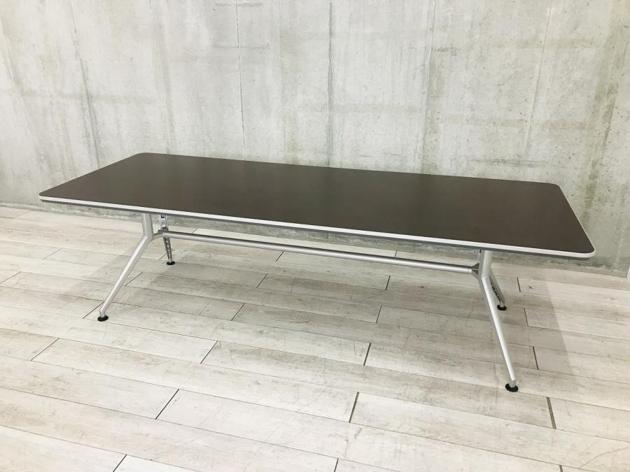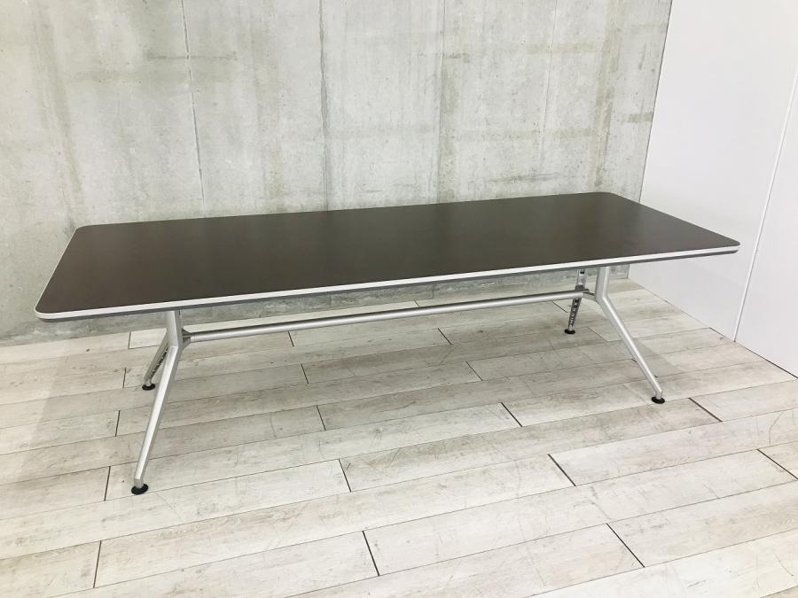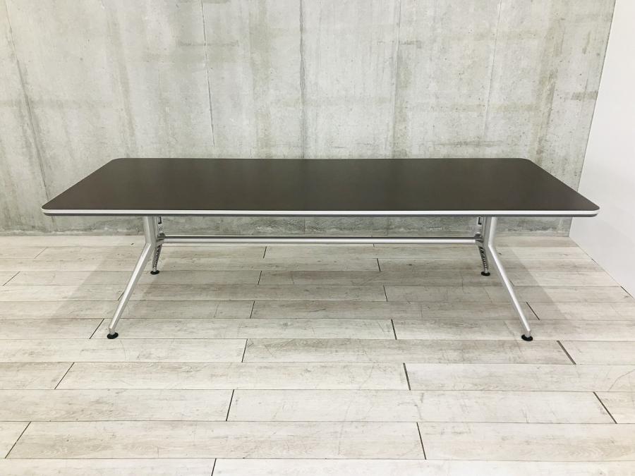 【会議室だけでなく休憩室でも!6~8名様対応・大型テーブル】■イトーキ (ITOKI) DDシリーズ ミーティングテーブル 会議テーブル 幅2400×奥行900mm ■木目ダーク天板 脚シルバー色- 春日部・越谷店