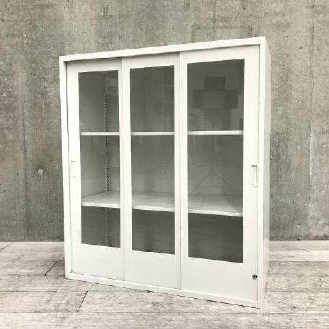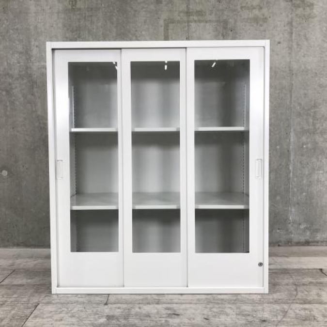【在庫入替セール】引き違い書庫 イトーキ シンライン ホワイト シリンダー錠 鍵付き 3枚扉で使いやすい 福祉・介護・医療関係に大人気