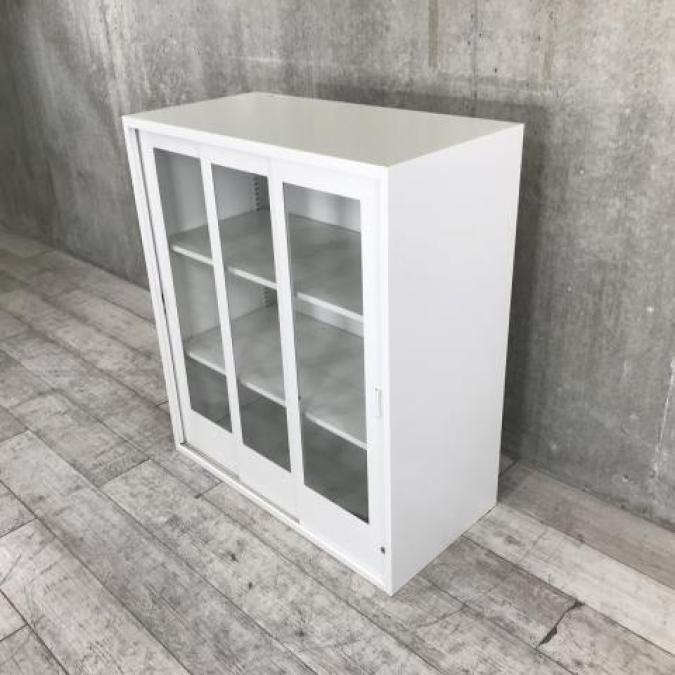 【イトーキ製の開閉スペースを確保した人気のキャビネット!】■3枚引き違いキャビネット ■イトーキ ■シンライン ■幅800mm×奥行き450mm×高さ1100mm 鍵付き書庫 オフィスバスターズ東大阪店