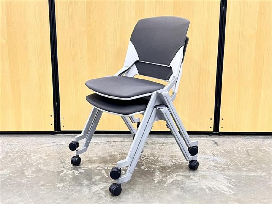 【2脚1セット!】平行収納、重ねての収納どちらも可能な珍しい仕様のシリーズ!内田洋行の「FM-320」■中古 ネスティングチェア ミーティング 会議 オフィス グレー/オススメ(おすすめ) /人気商品在庫がある店舗一覧