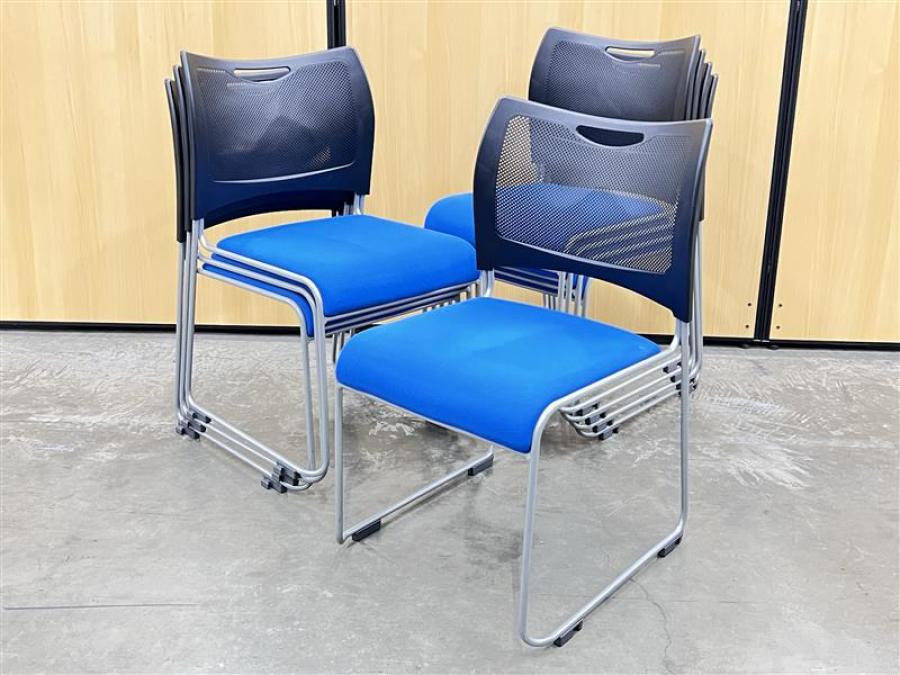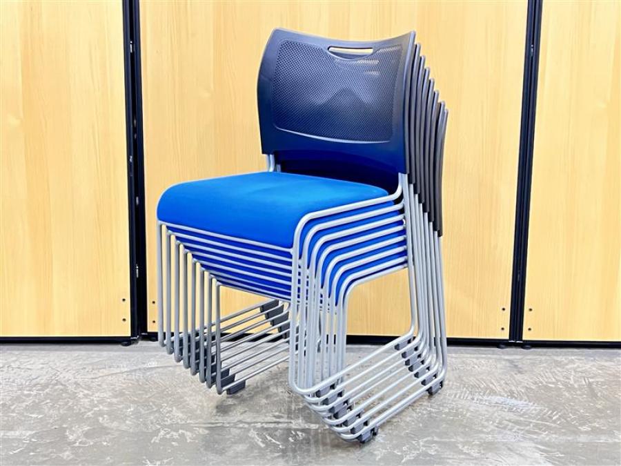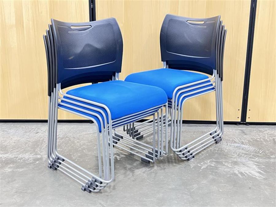 【8脚1セット!】定番カラー、明るめブルーで気分爽快!簡易会議室や休憩室におすすめ!■アイリスチトセ/スタッキングチェア/ブルー/オススメ(おすすめ) /人気商品- 在庫数