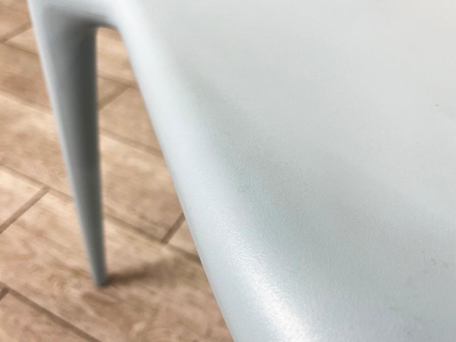 - かなり強い濃い黄ばみ・変色が商品全体にある。(例、座面・背もたれ、脚部等にある。)