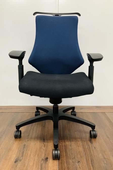 【入替セール】【姿勢の変化に寄り添う、体にフィットする快適な座り心地!】■イトーキ(ITOKI)製 エフ(f)チェア 肘付き ハイバック クロスバックタイプ ■可動肘 ■ストロングブルー×ブラックシェル