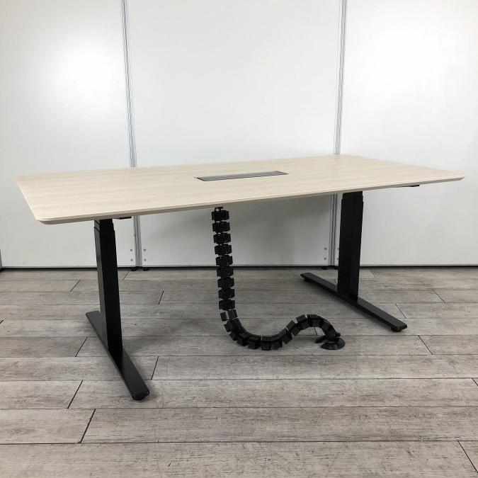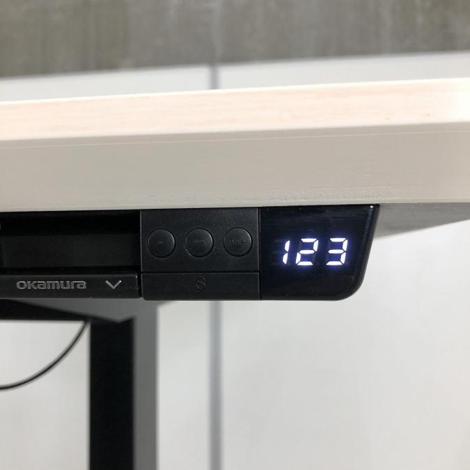 【☆座り仕事での疲労を軽減!】■オカムラ(Okamura) Swift(スイフト)シリーズ 電動上下昇降テーブル 配線口あり W1800×D900×H700~1250mm ■やさしいイメージで癒しの木目カラー!【在庫入替セール品!(本在庫限定価格)】- 川崎店