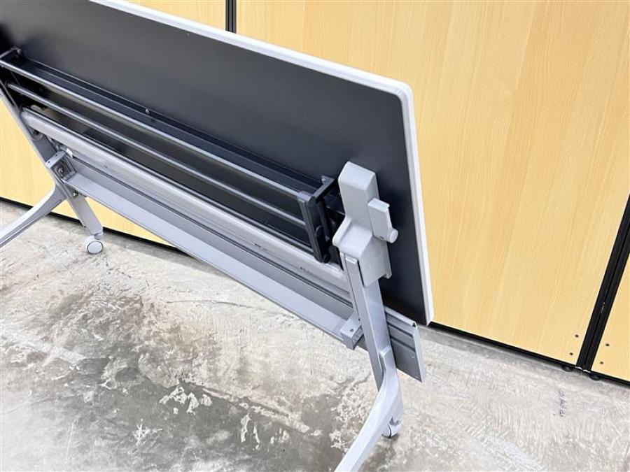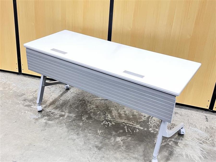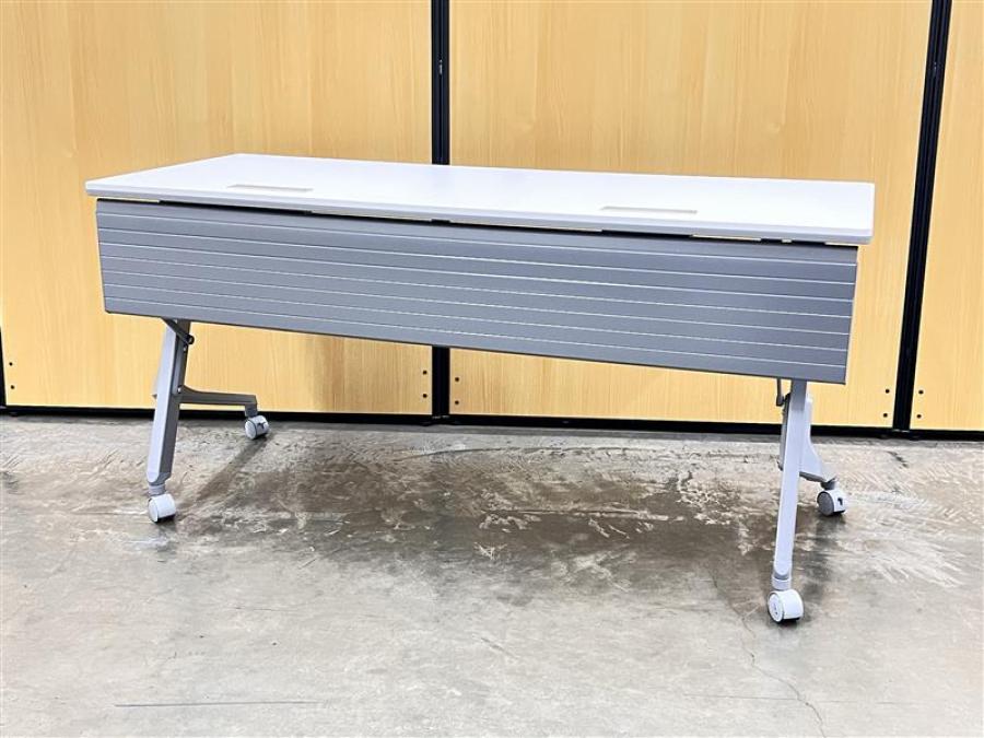 【2名様で使えるスタックテーブル入荷!キャスター付きで移動も楽々!】■オカムラ製 カルドー サイドスタックテーブル 幅1500×奥行600 ■ホワイト天板×グレー幕板 ■幕板付【天板跳ね上げ式でコンパクトに収納】 【弊社使用欄:A00976001】/オススメ(おすすめ) /人気商品- 在庫数