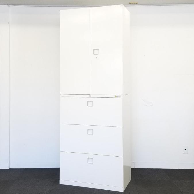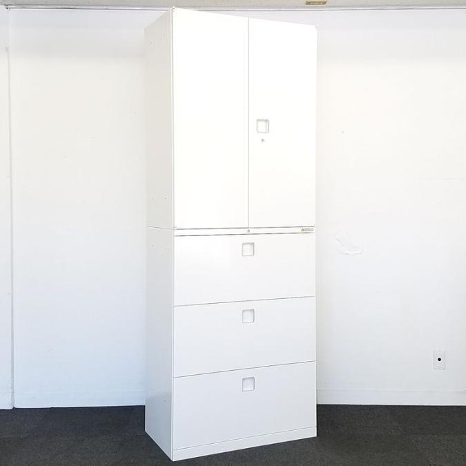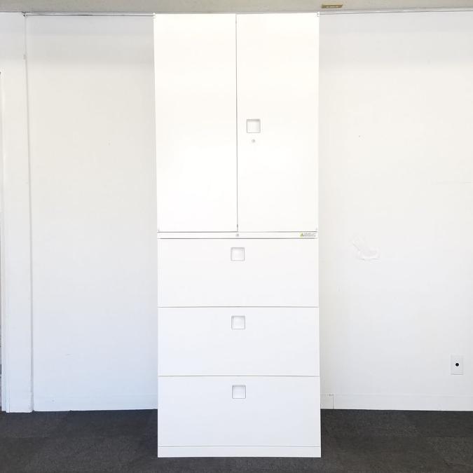 ☆H2150mm!【書庫探しに迷ったらコレ!】■オカムラ製 上下書庫セット(両開き+3段ラテラル) レクトラインシリーズ ホワイト ■省スペースに大量収納!オフィスの書類をまとめて整理!【Okamura Rectline】