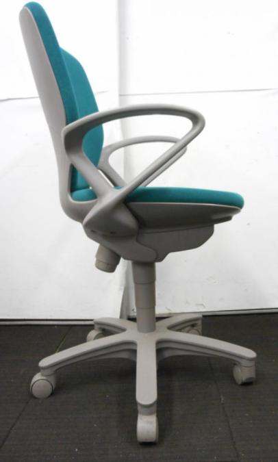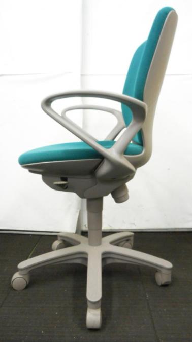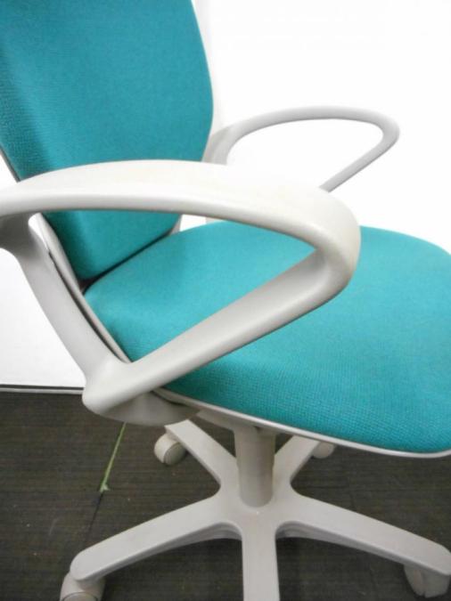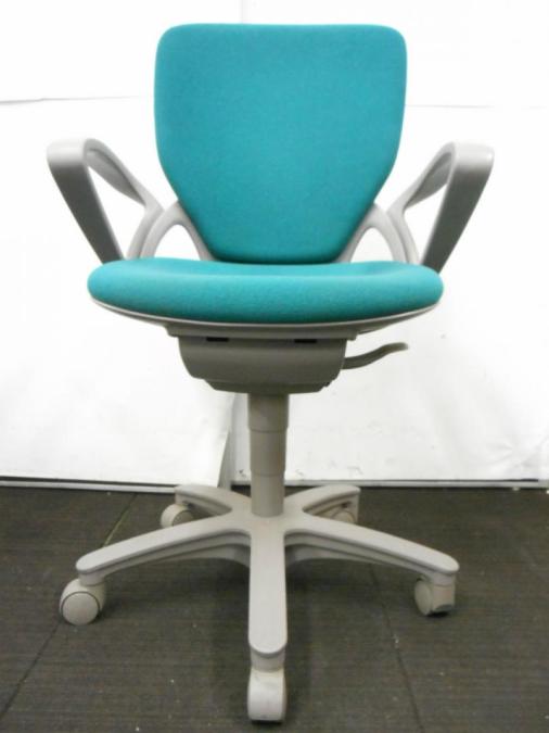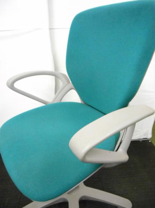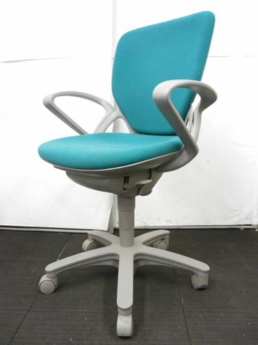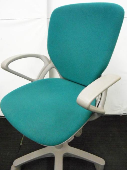 落ち着いたグリーン色で、オフィスに合うシンプルチェアです。