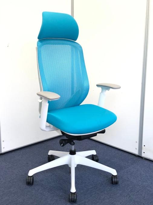 《現物写真だから安心!》オカムラ製の人気オフィスチェア【シルフィーメッシュ/可動肘/ヘッドレスト付き/ブルーグリーン】が先着1名様ご案内可能です!