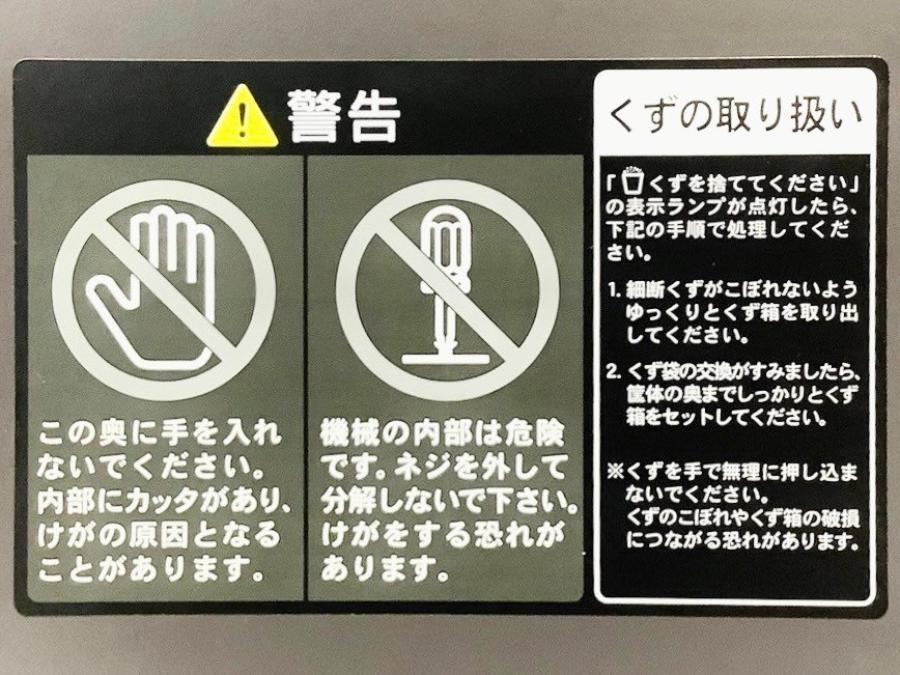 ※縦と横に切る形式で、カットした紙のサイズが小さく、機密性が高いです。