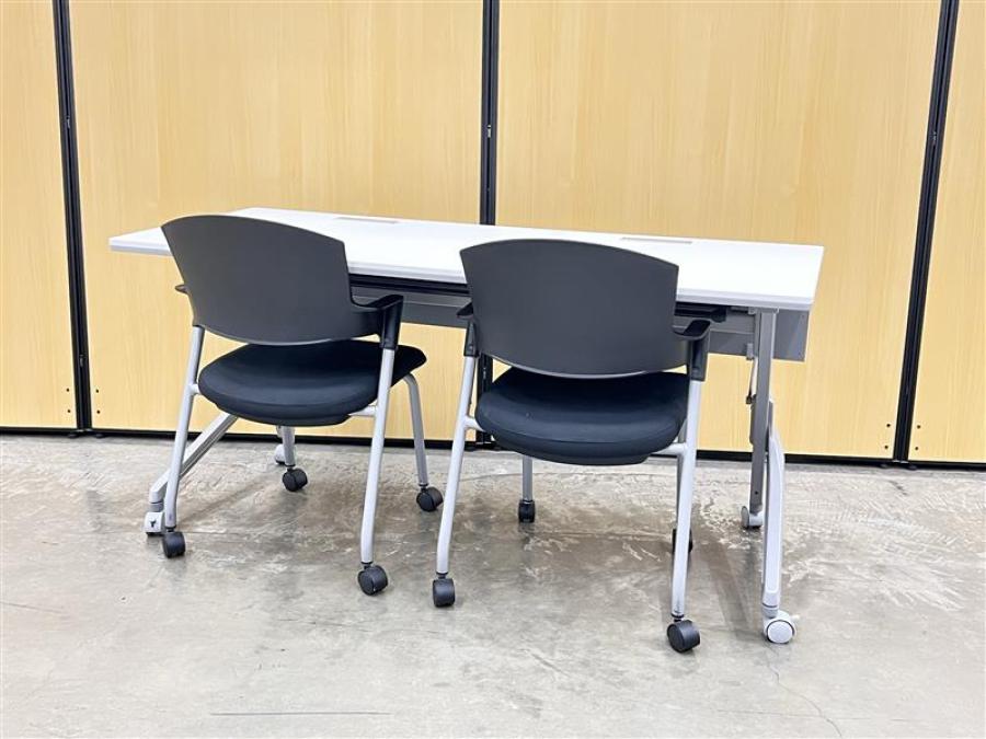 テーブル+ミーティングチェアのセット!【2名様で使えるスタックテーブル!キャスター付きで移動も楽々!】■オカムラ/カルドー/サイドスタックテーブル/幅1500×奥行600/ホワイト天板×幕板付■ミーティングチェア/コクヨ/プロッティ【天板跳ね上げ式でコンパクトに収納】 【弊社使用欄:A00976001/A00979106】/オススメ(おすすめ) /人気商品- 在庫数