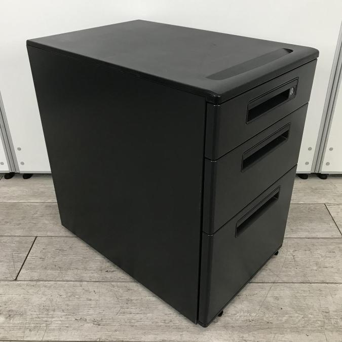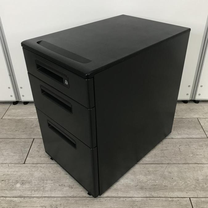【デスクの拡張に!作業スペースと収納力を兼ね備えた便利アイテムがシックなブラックで登場!】■ライオン製 (LION) デスクインワゴン 3段 H611㎜ ■ブラック ■シリンダー錠- なんば日本橋店