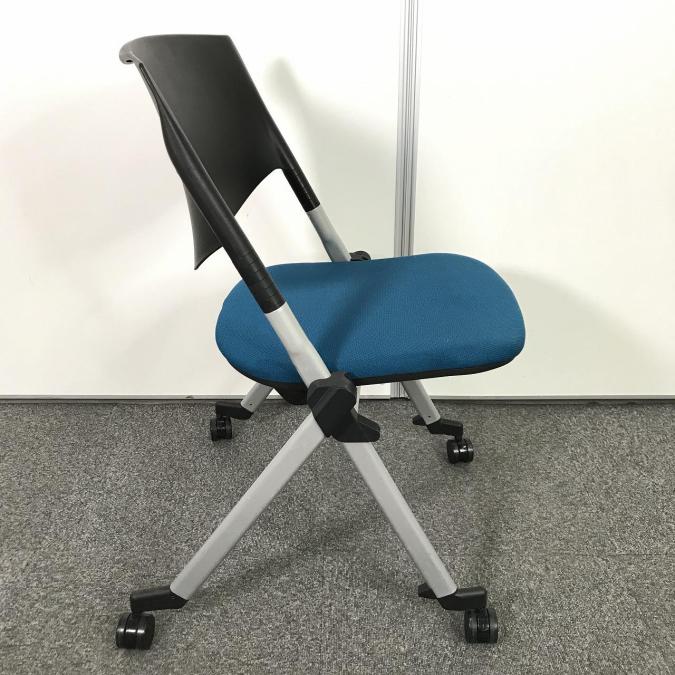 【定価5万円】【会議室におすすめ!折り畳んで横に重ねて収納可能!】■オカムラ(okamura)製 リータⅡ(LITAⅡ) ミーティングチェア ネスティングチェア 会議用 ■キャスター付 ■ブルー/背面樹脂:ブラック【移動も楽々!】- 仙台店