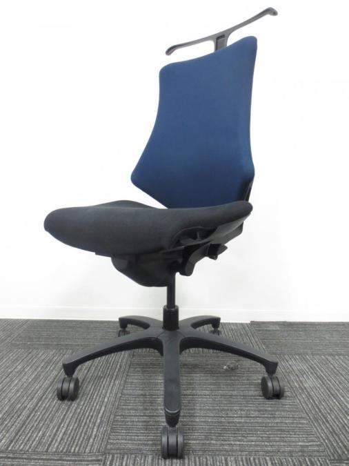 姿勢の変化にフレキシブルに対応!オフィスに馴染むツートンカラーのコンビ張り仕様!高機能チェア ■イトーキ/エフチェア/背:ネイビーブルー/座:ブラック コートハンガー・可動肘付き- 立川・八王子店