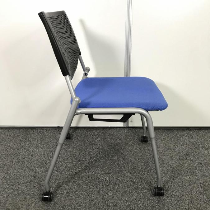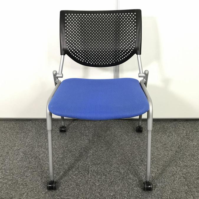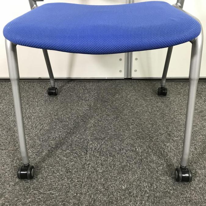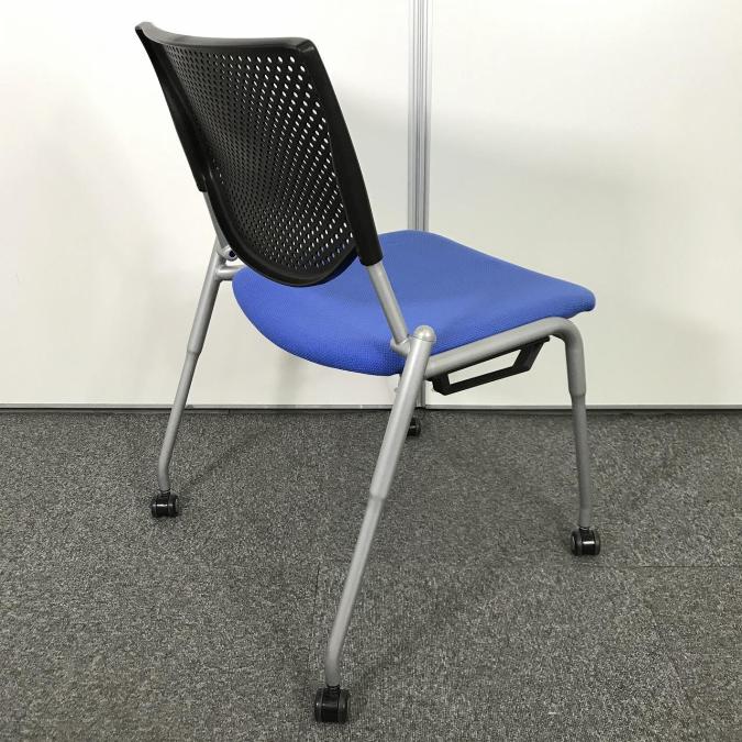 【定価4万円】【連ねて収納可能!】【ミーティングルームやリフレッシュルーム用としてオススメ!】■オカムラ(okamura)製 プロスタック ネスティングチェア スタッキングチェア プレーンタイプ ■座面ブルー/背面樹脂メッシュ:ブラック ■キャスター付 ■メッシュサーキュラーバリューCO2削減量の算出について