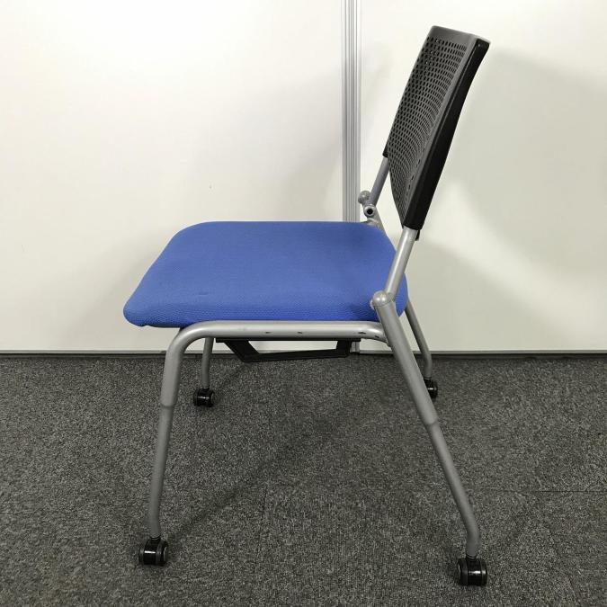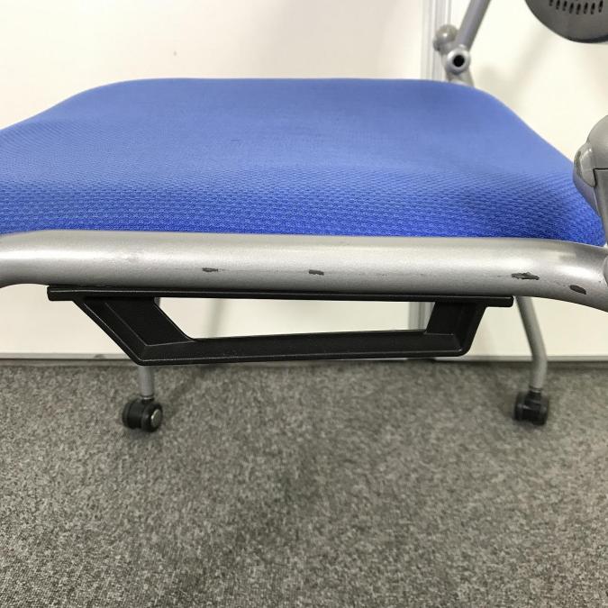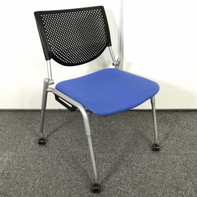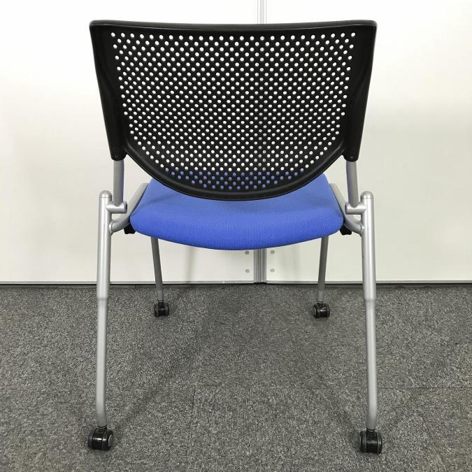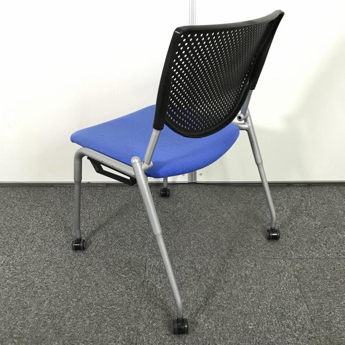 【定価4万円】【連ねて収納可能!】【ミーティングルームやリフレッシュルーム用としてオススメ!】■オカムラ(okamura)製 プロスタック ネスティングチェア スタッキングチェア プレーンタイプ ■座面ブルー/背面樹脂メッシュ:ブラック ■キャスター付 ■メッシュサーキュラーバリューCO2削減量の算出について