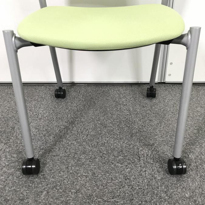 【定価約4万円】【快適なクッション性で長時間の会議も安心の座り心地!】■オカムラ(okamura)製 8147シリーズ スタッキングチェア 会議用 ■キャスター付 ■グリーン 【重ねて収納可能!】- 仙台店