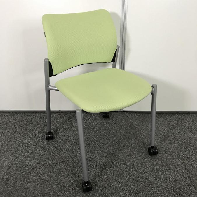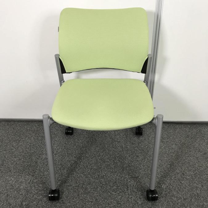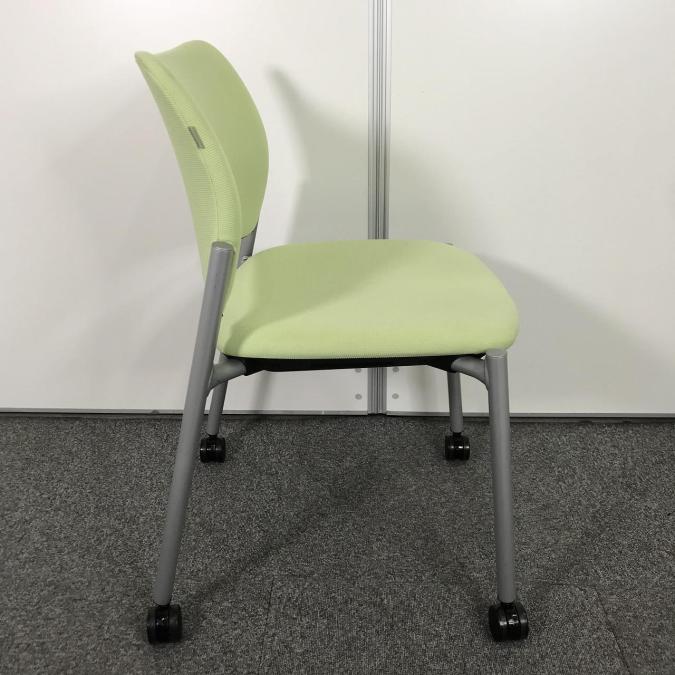 【定価約4万円】【快適なクッション性で長時間の会議も安心の座り心地!】■オカムラ(okamura)製 8147シリーズ スタッキングチェア 会議用 ■キャスター付 ■グリーン 【重ねて収納可能!】- 在庫数