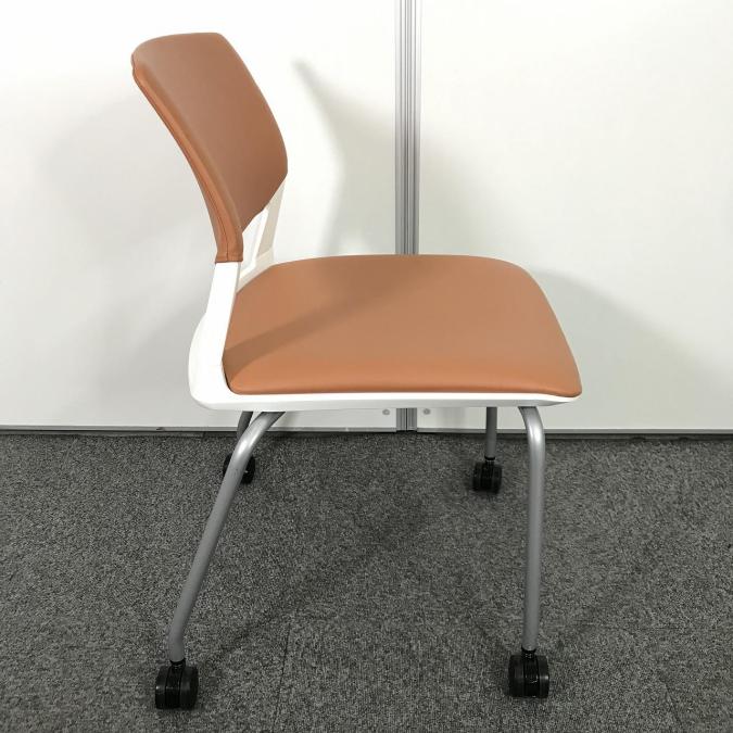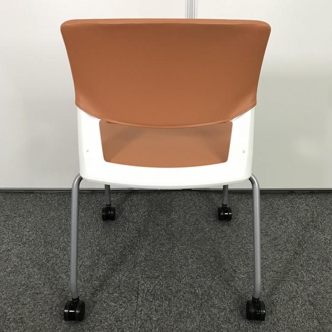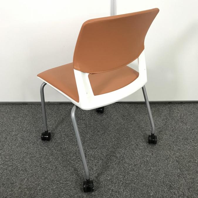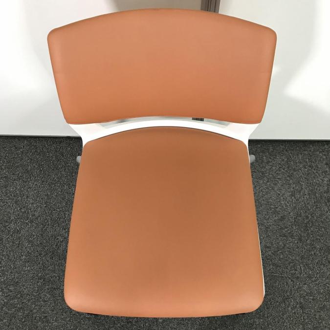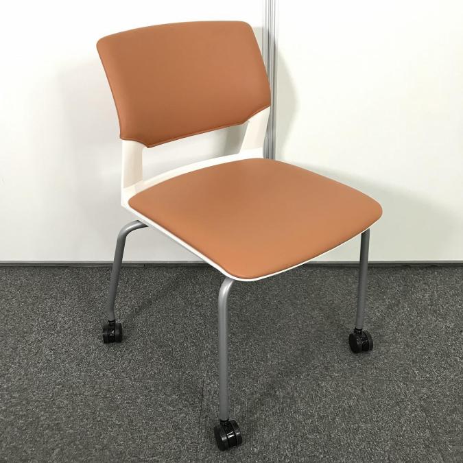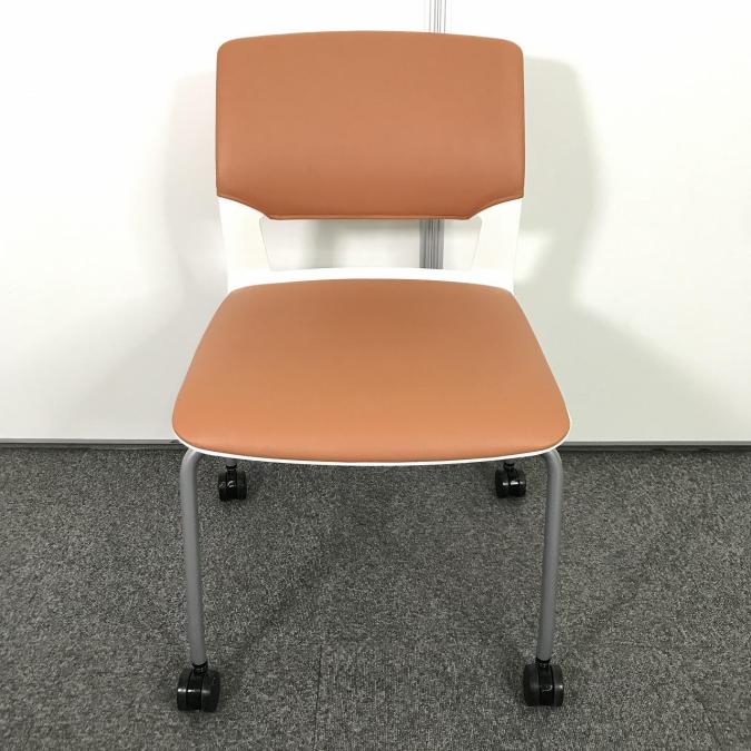 【定価4万円】【コンパクトでお手頃なスタッキングチェアが入荷!】■KOKUYO(コクヨ)製 160シリーズ スタッキングチェア ミーティングチェア ■オレンジ/レザー生地/背面カバー付き ■キャスター付き- 仙台店