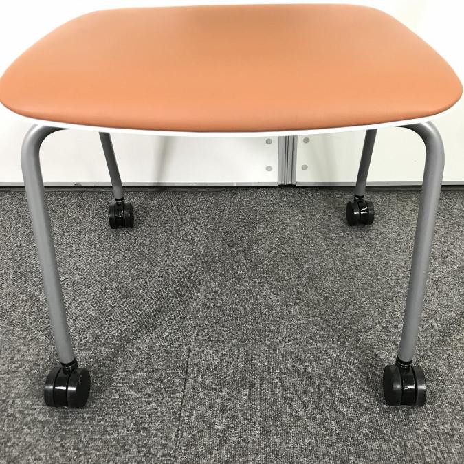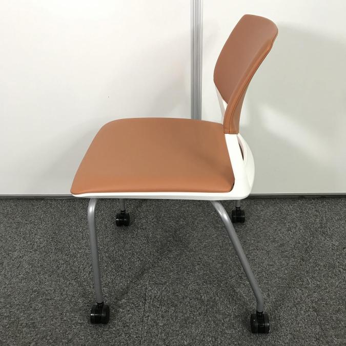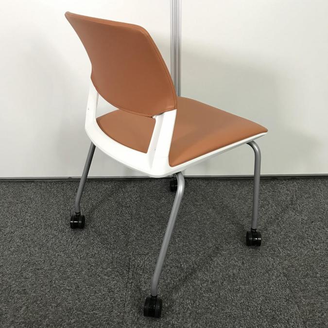 【定価4万円】【コンパクトでお手頃なスタッキングチェアが入荷!】■KOKUYO(コクヨ)製 160シリーズ スタッキングチェア ミーティングチェア ■オレンジ/レザー生地/背面カバー付き ■キャスター付き- 在庫数