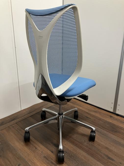 【在庫入替セール品】【前傾機能で作業効率アップ!安定感のある座り心地で人気な大好評!ご自宅用にもオススメ!】■オカムラ(okamura)製 Sabrina(サブリナ) ハイバック 肘無し ■背面メッシュ:アクアブルー 座面:ブルー ホワイトフレーム【弊社使用欄:A01014866】【SN】