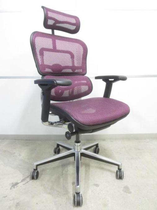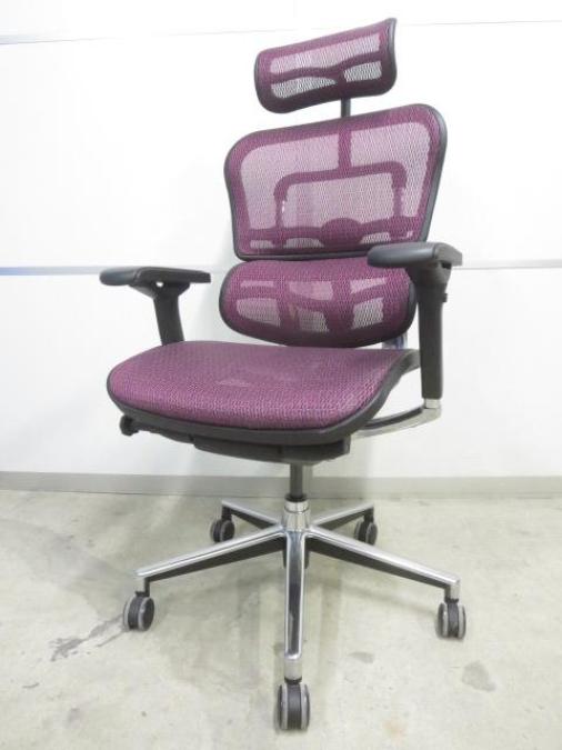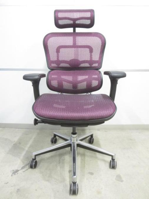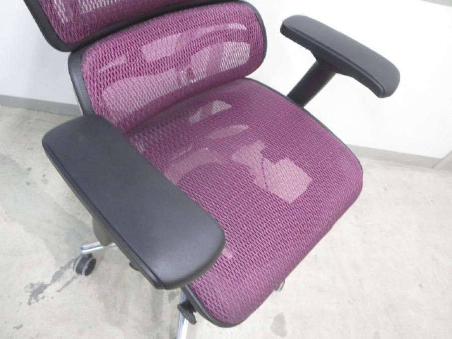 【スタイリッシュなデザインのハイグレードメッシュチェアー!】■エルゴヒューマンチェア 可動肘付 パープル ヘッドレスト付 ■人間工学に基づいた快適な座り心地!!- 川崎店