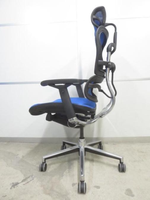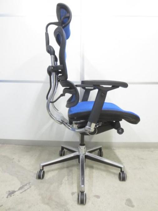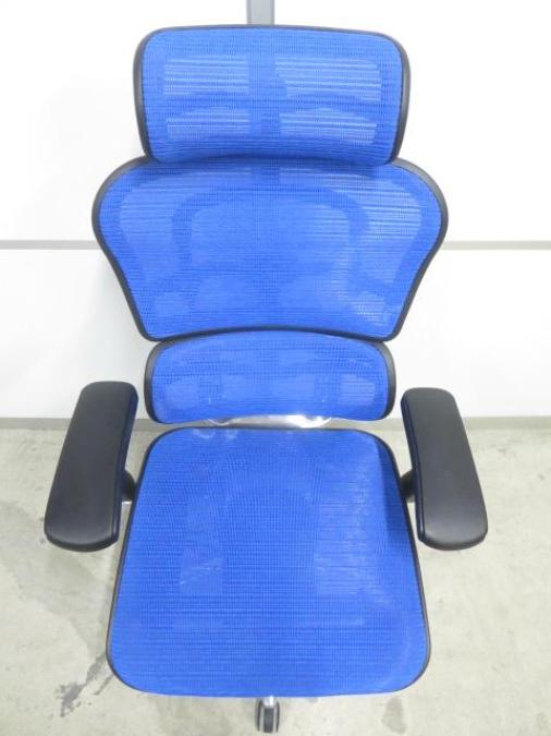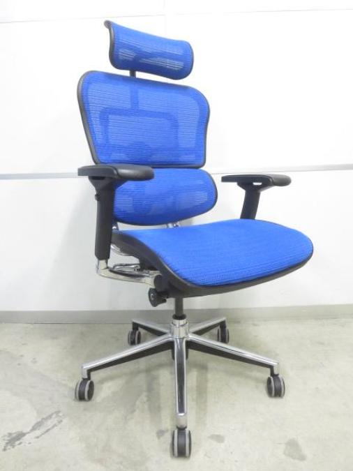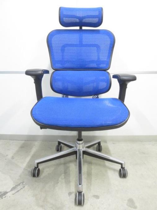 【人間工学に基づいた快適な座り心地で腰への負担を軽減!】■エルゴヒューマンチェア 可動肘付 ブルー ヘッドレスト付 ■多彩な調整機能でデスクワークが捗ります!- 川崎店
